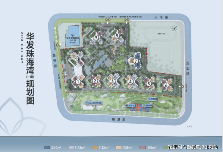 楼栋数量:共10栋高层塔楼,采用大围合布局。