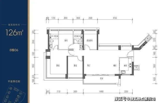 ②、126㎡的4房2厅2卫(分布在8栋06户型,朝西南向,看园林景观),横厅南北通透户型格局,客餐厅6.4m开间,厨房LDKB一体化设计,五开间朝南,主卧270°飘窗看园林景观,得房率约75.27%(不含赠送)。