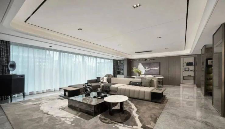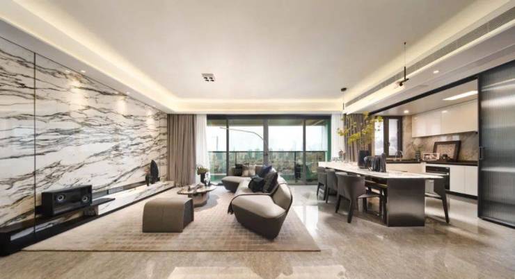 ⦁采光赏景。区别于过去“竖厅”的进深长、面宽短,会导致采光面和观景面不足,也不同于横厅对面积的要求相对较高。端厅进一步优化了空间布局,推窗见景超宽视野,不仅能够增加整体明亮度和舒适度,还能拉伸景观视角。
