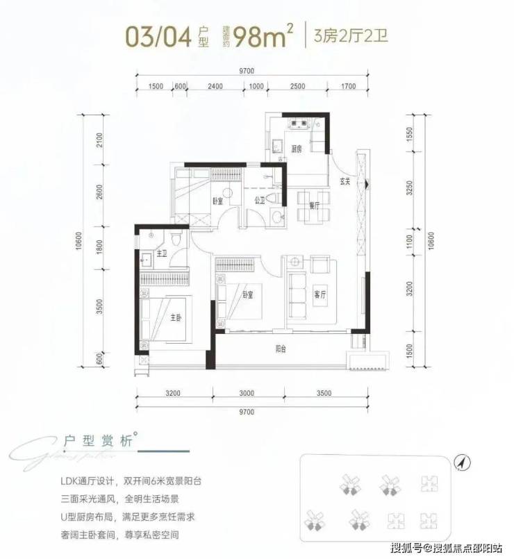 建面约98㎡是传统竖厅动静分区格局,客厅进深7.55米(不含阳台),开间3.5米,配有6.5米宽景阳台,主卧13.18㎡(不含主卫和飘窗),客厅空间变化不大,但厨房和卧室空间要好很多,居住的舒适性会比较好。