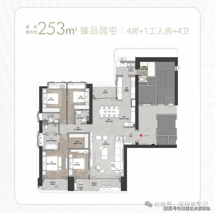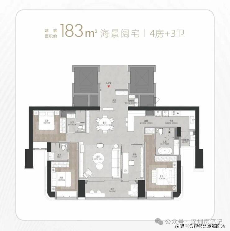 T9/T10栋:总高53层,4梯3户,183-270㎡4房及270㎡复式。