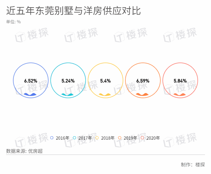 数据显示,2017年至2020年,东莞新房合计供应约20.19万套,别墅仅供应约10602套,占比仅为5.25%。相当于每供应100套住宅,才有5套别墅供应。