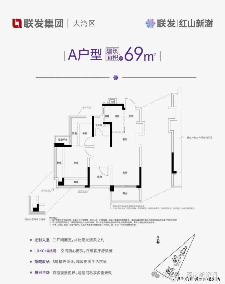 •新规产品,高使用率,建面约69-100㎡灵动居住空间,以LDKG+X空间打造灵动格局,适配家庭的每一次成长需求