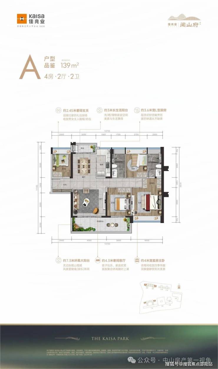 🔷A户型:约139㎡,4房2厅2卫,三开间朝南,13.7米面宽采光,南北双阳台,全明通风佳,奢阔大双厅,空间更自如。