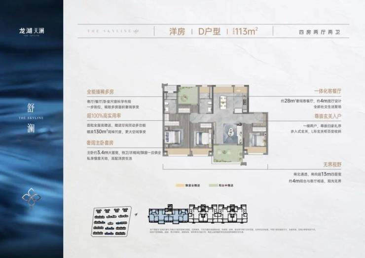 龙湖天澜,作为湖心新城首个新规后洋房社区,打造建面约85-144㎡奢境会所洋房,实用率超100%,刷新珠海户型标杆。