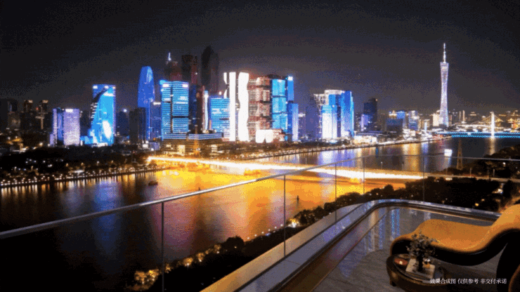 天河保利南方面粉厂住宅项目:保利玥玺湾,全盘仅规划建设6栋35-50层高的超高层江景豪宅,整个项目采用前高后低(南低北高)的阶梯式半围合布局,使得每一户都能拥有南向望江的绝美景观。