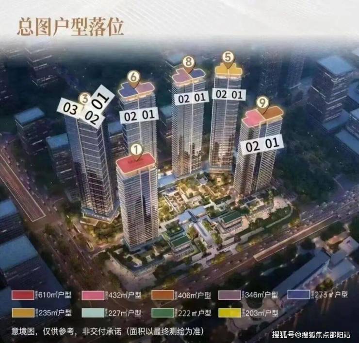 下面我们来看保利玥玺湾项目的户型分布图,项目总共由6栋35-50层高的超高层住宅组成,1号楼是整个项目最大的630㎡楼王整层户型,3号楼户型涵盖203-222-227㎡三种四房户型,6号楼和8号楼的户型则是相同的270㎡四房和347㎡五房产品,5号楼户型为237㎡四房产品,9号楼则是前排大面积411-436㎡的五房户型。
