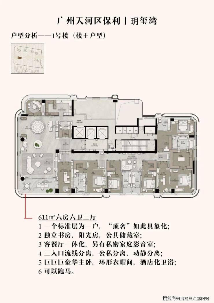 保利玥玺湾项目首开的部分楼栋户型已经绝大部分基本售罄,目前保利玥玺湾仅剩下少量天地楼层可选,保利玥玺湾预计将在年后加推1栋前排楼王611㎡户型,楼王户型一层一户的设计让每一户都能拥有270°的环幕江景视野,楼王户型套均售价约一个亿起步,整个1栋611㎡的楼王产品仅有30套稀缺单位可售,注定将会颠覆广州顶豪市场非常抢手!