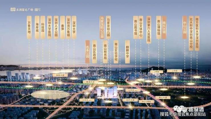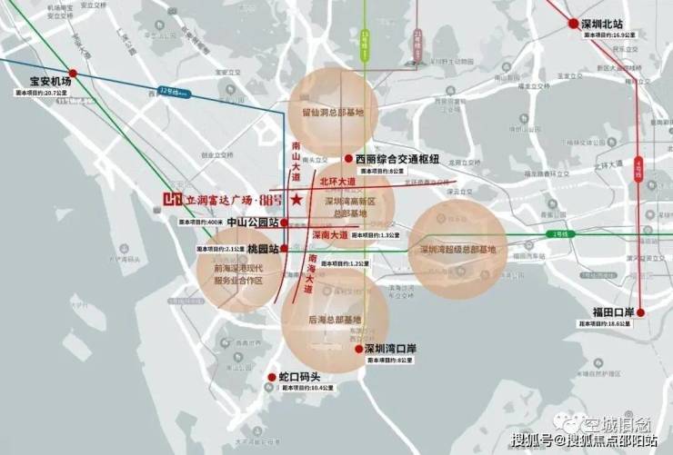 中国科创看深圳,深圳科创看南山,深圳市6+1总部基地,南山区独占4+1,项目毗邻深圳湾高新区总部基地,前海合作区,后海、深圳湾、留仙洞总部基地环绕,战略高地围合,智领深圳价值中芯