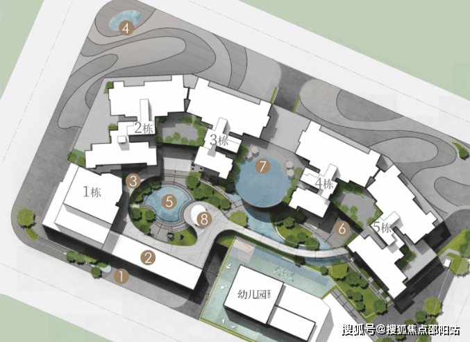 全区的弧线设计元素在此得到呼应,圆形及椭圆形的应用,修饰了由建筑边界造成的不规则场地形态,带给业主一处流畅的活动空间。
