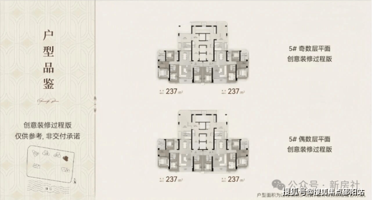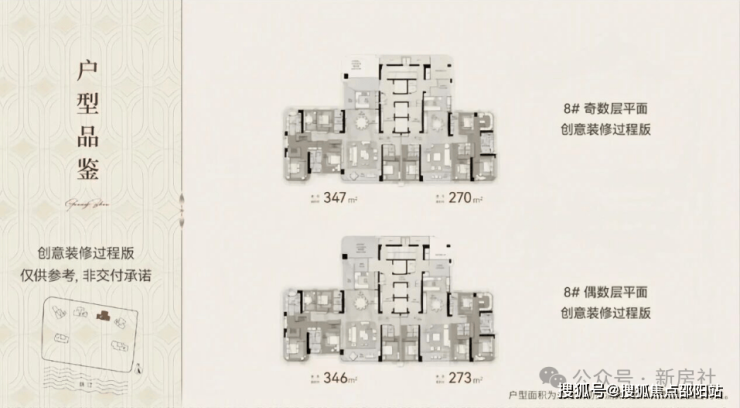 270/273㎡户型特点: 一层两户,3T2户独立梯厅互不扰; ·5.7*11.65m直厅宽敞大气; ·客厅、阳台、众数套房可正南望江及 琶洲会展; ·南北对流双阳台; ·工人梯独立动线,保障豪宅私密性; ·主卧270°景观转角飘窗; ·800mm飘窗可打; ·奇数层32㎡6.6m通高平台空间;