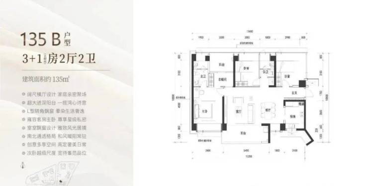 135㎡为B户型横厅格局