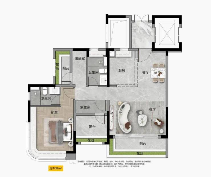 本宣传资料所有文字、数据、图片及所标尺寸等仅为本项目建设区域设计效果的表达和示意,为邀约邀请,不构成要约内容,相关内容不排除因政府相关规划、规定及其他原因而发生变化,一切有关房屋的具体信息以书面合同及政府最终。