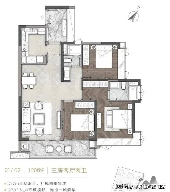 【A5-01/02户型】 建筑面积约120㎡三房两厅两卫