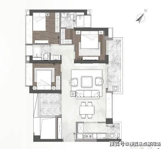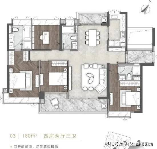 【A1-03户型】建筑面积约180㎡四房两厅三卫