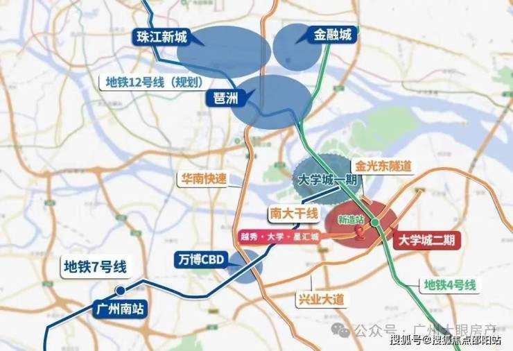该项目坐落于国际创新城的核心区域,地处琶洲以南,紧邻地铁4号线新造站,交通便捷。