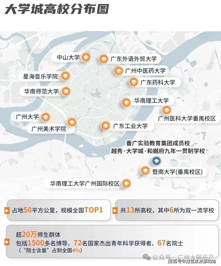 其中,华南理工大学国际校区、暨南大学番禺校区、广州医科大学二期等高校均落户于此,营造出浓厚的学习氛围。