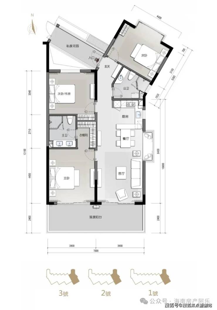3栋低密纯板高层建筑,一字布局,南北通透,户户皆享超大观景阳台180°瞰海观山的极致视觉,海天山色尽收眼底。1.35绝版超低容积率只为成就223席高端舒适的完美胜境。
