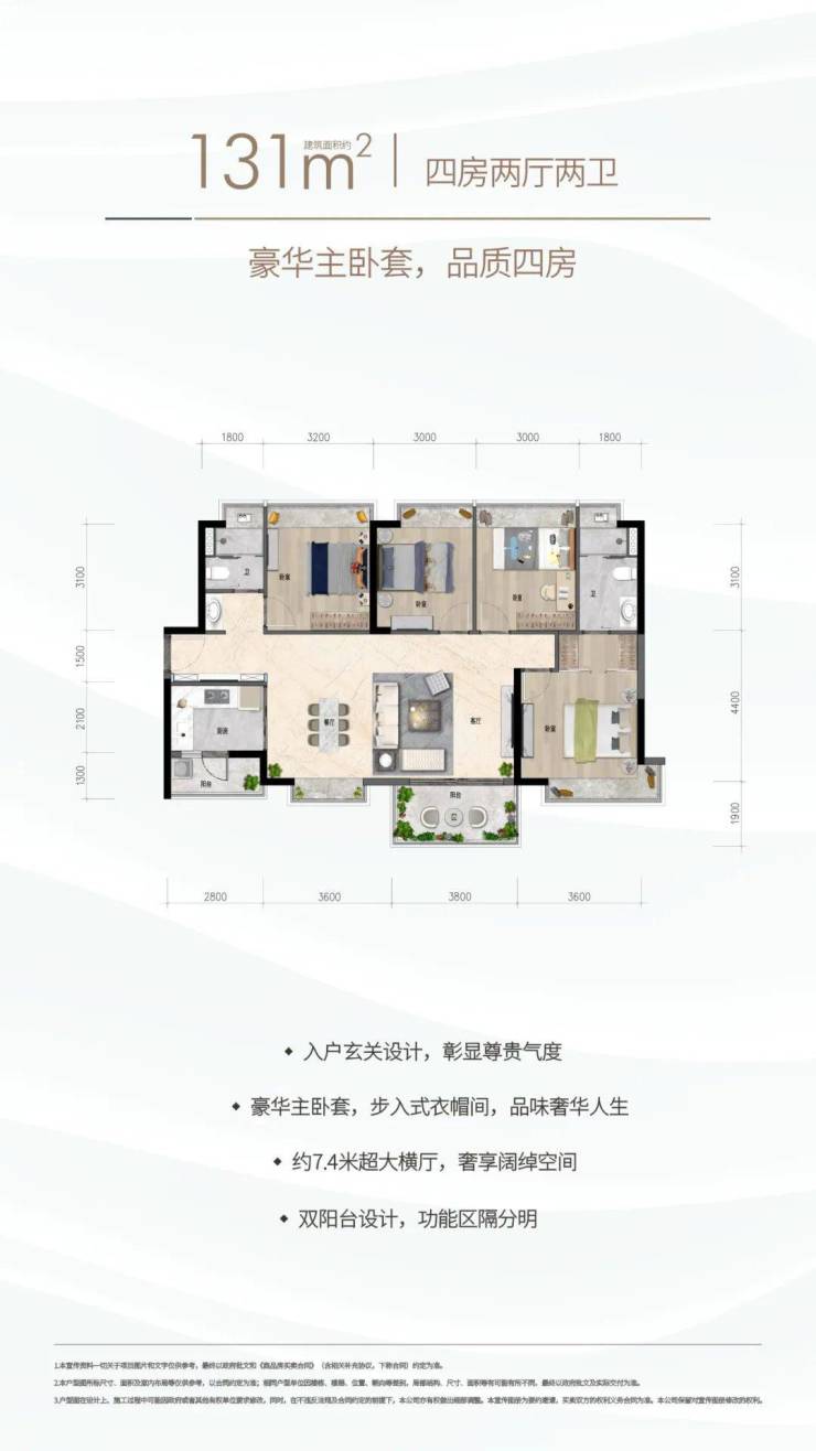 约131㎡四房两厅两卫:豪华主卧套间,高端品质四房