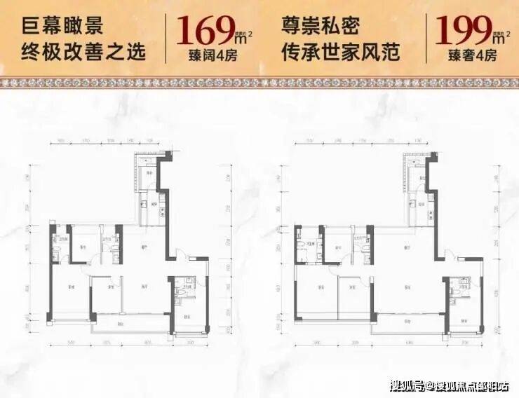 169㎡的4房2厅3卫,设计的是竖厅格局,2梯2户,专梯入户,独立入户玄关,客厅4.65米开间,LDKB一体化设计,四开间朝南,双主卧套间,分别做到了主卧18.98㎡/套间12㎡/次卧9.35㎡/次卧9.04㎡(包含墙体飘窗),客厅连接次卧出7.47米长的大阳台,看花园全貌景观,二字型厨房带1个生活阳台,公卫三段式分离,得房率68.58%(不含赠送),正南朝向。