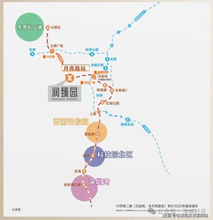地铁交通:直线距离约500m到达地铁13号线月亮路站(建设中),1站凤凰城,9站到南山(约30分钟到达南山)。2025年将推动13号线二期(北延)建成通车(信息来源:宝安日报)。