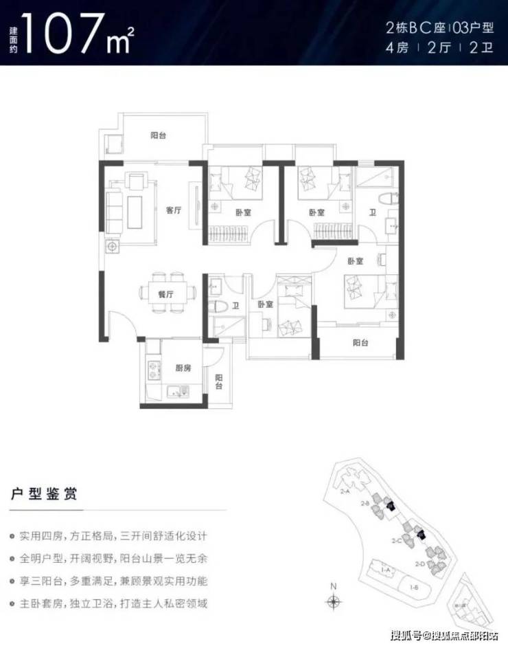 建面约78-129㎡3-4房户型,南北通透,3房3.5~3.7m,4房3.8~4.2m,罕见阔绰开间,客厅、厨房、卧室三阳台多飘窗,超高使用率。