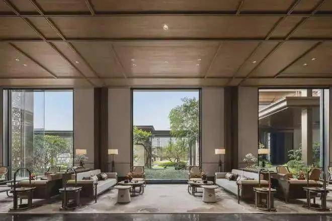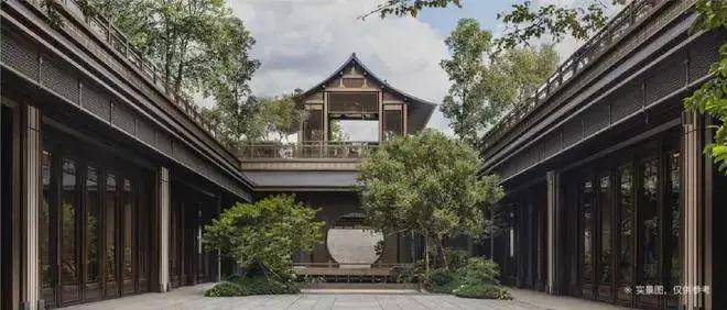 保利天瑞在新中式府院的形制打造上,并没有把眼光聚焦在或唐或宋,或徽派或岭南的建筑皮相上,而是取了中式的骨相,然后用当代前沿的设计元素进行表达。