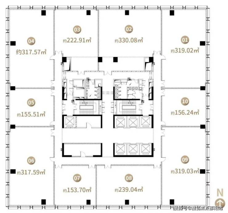 标准层面积:2,400-2,500 ㎡