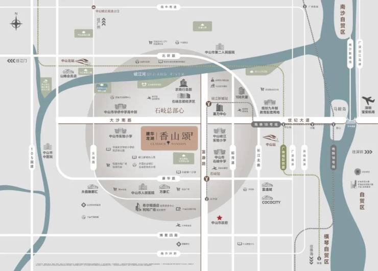•交通枢纽| 3纵2横1地铁、双城轨外联内通,直达广州,约400m(直线距离)即达岐江城地铁站 (在建中),近距中山站、中山北站两大站点