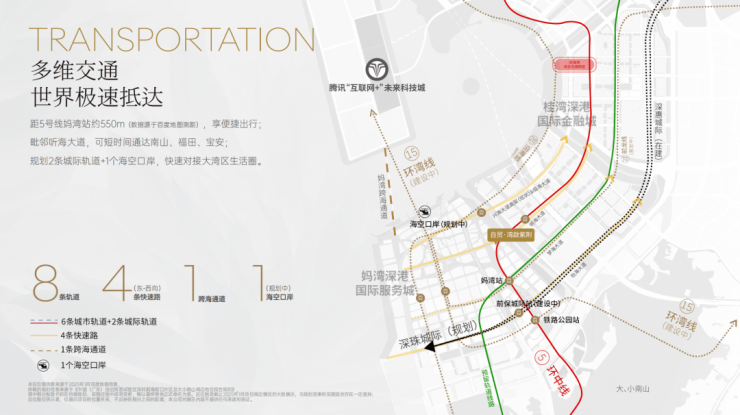 距5号线妈湾站约550m,毗邻听海大道,可快速通达南山、福田、宝安及大湾区生活圈;