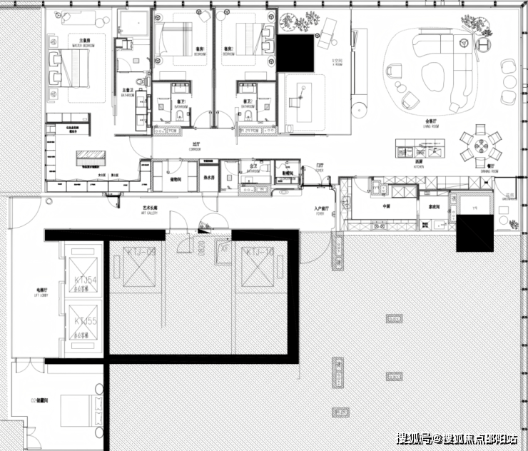 主力户型建面约340、480、620㎡,其中480㎡为LDKB一体化设计,X空间集艺赏、茶话、书房、私享四大功能,酒店式套房,为居住者营造舒心的体验。