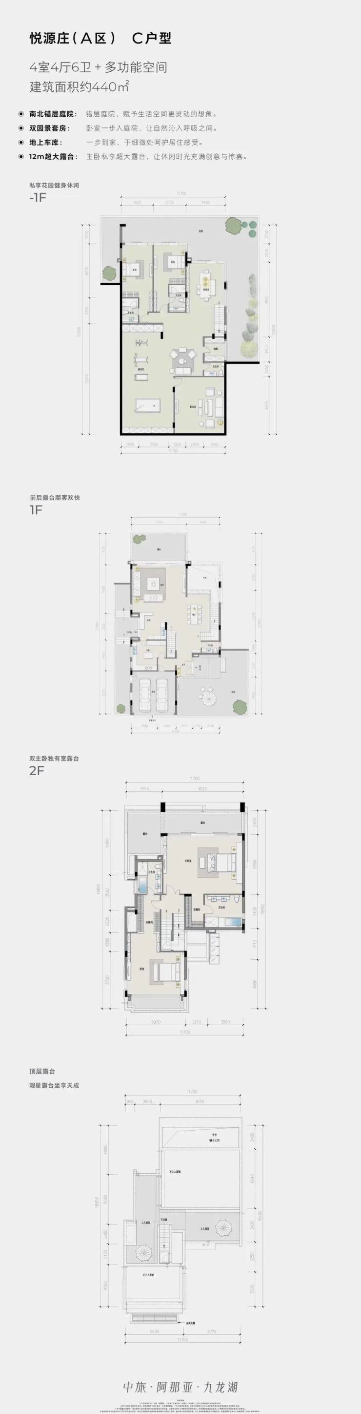🏠A区-C户型图(建筑面积约440㎡):