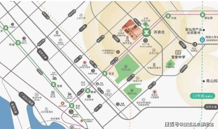 临靠5号线洪浪北地铁站D出口,向南3站到达宝安中心站,6站到达前海湾站,向北2站到达留仙洞总部基地,7站到达深圳北站;15号线(规划中),联通大铲湾、南山西丽和科技园片区。