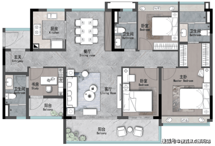 建面约107m² | 4空间二厅二卫