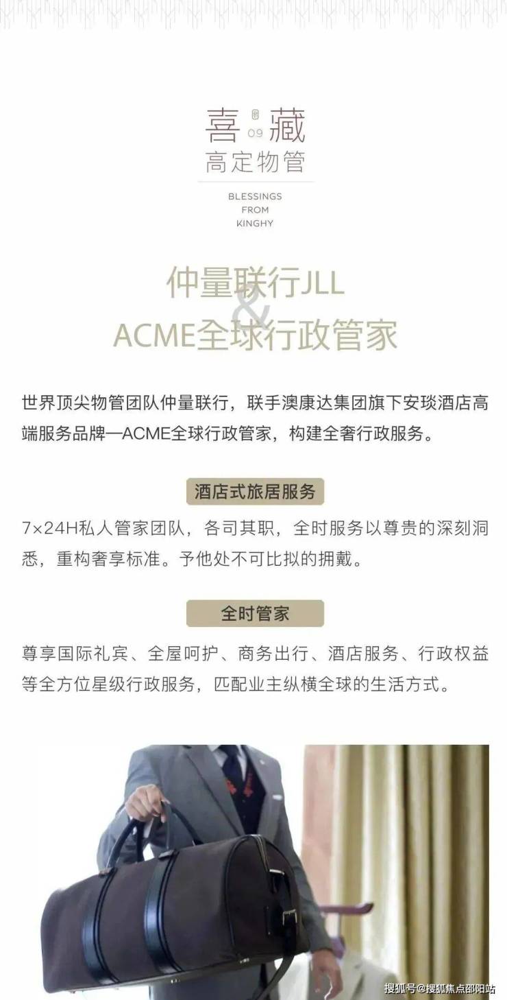 深谙时代掌舵者全球旅居生活的习惯与视野,璟喜采用澳康达集团旗下安琰AYEARN酒店高端服务品牌—ACME全球行政管家,以定制化酒店式旅居服务为内核,为塔尖圈层构建全奢行政服务。