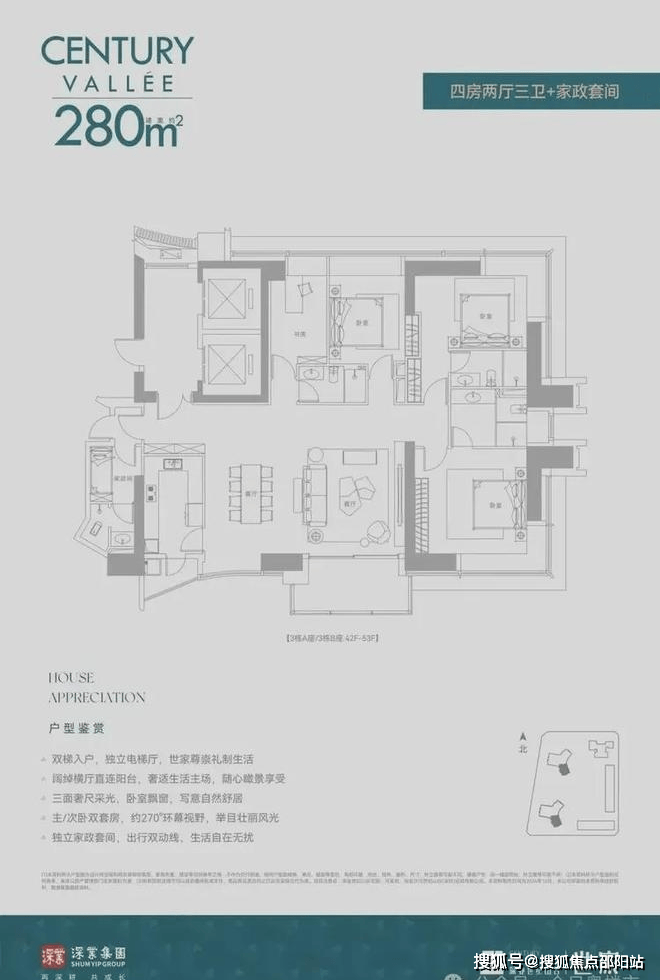 深业世纪山谷世家大平层住宅出售,销售户型233平米,280平米,386平米三至四房和420--1080平云端复式户型