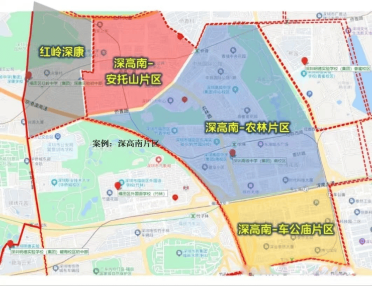 中学:深圳高级中学(南校区)学区,升学竞争力强,学区范围覆盖安托山至香蜜湖。