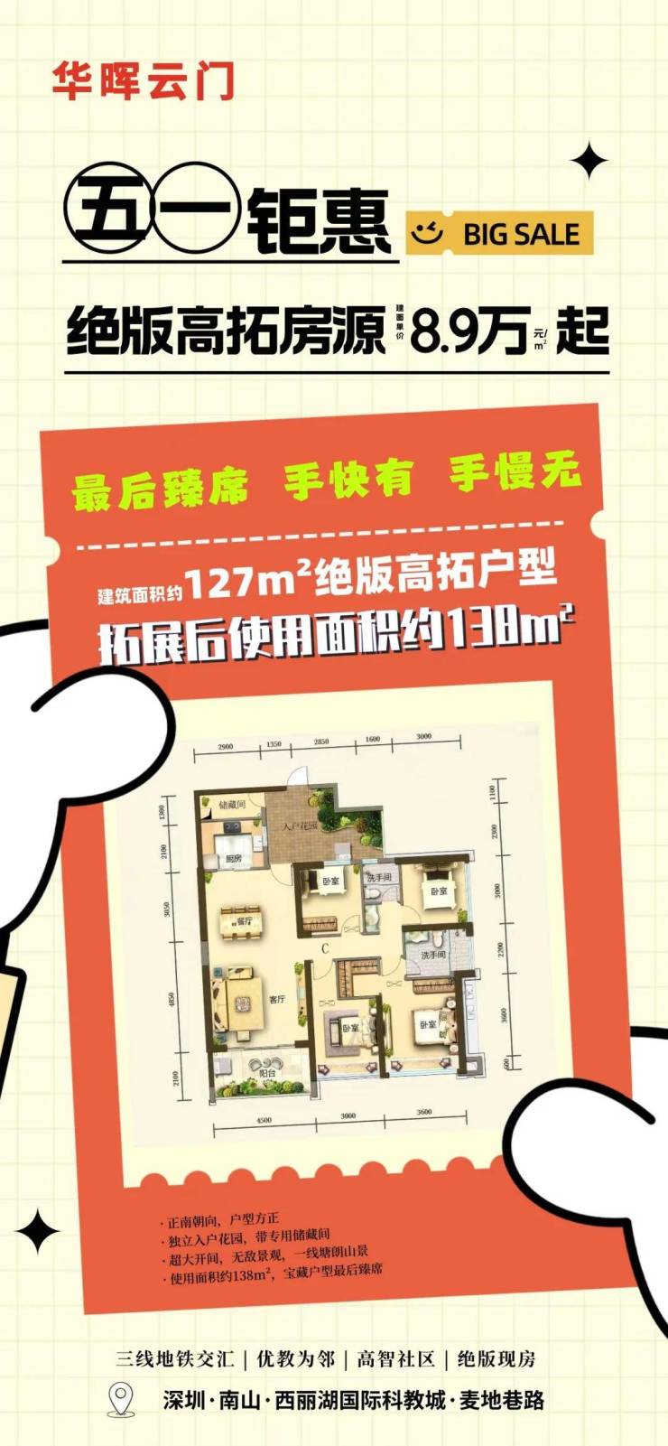 使用面积140m²+,宝藏户型最后臻席
