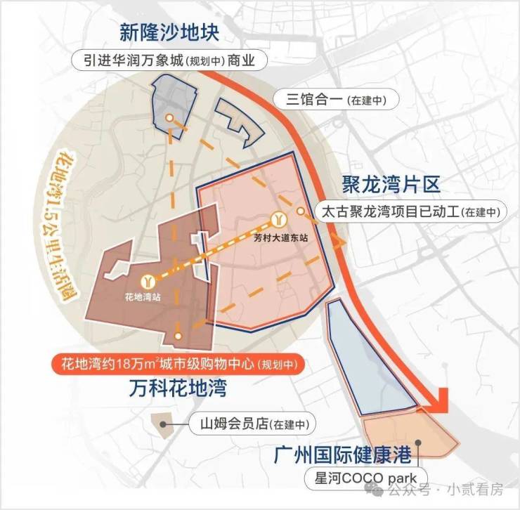 生活配套丰富,拥有 3 座潮奢商业坐标,全国首座双太古 [在建中]、26.9 万㎡华润万象城 [在建中]、理想花地 18 万㎡城市级购物中心 [规划中],构建世界级商圈未来。