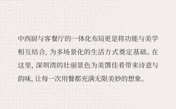 中海·深湾玖序的室内设计强调实用性和美学的完美融合,整体布局流畅自然,充分考虑了居住者的生活需求和使用习惯。