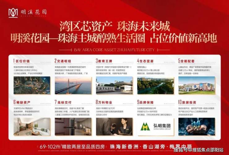 弘明集团成立于1992年,深耕珠海三十载;专注房地产开发30余年,涵盖中高端洋房、公寓、别墅多种物业形态。代表项目有银石雅园(全国旧村改造学习样板)、万科红树东岸(目前珠海唯一一个占地500亩,总建78万平的超大型社区,配套有幼儿园、小学、中学的成熟小区)