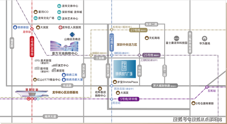 道路交通:楼下工业路速达龙华中心区,油松路接布龙路速达全城各区,项目车行约19分钟快速接驳深圳北站、约25分钟直通福田,便捷交通速达全城