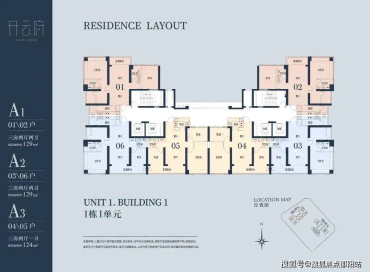 A1有两条腿,分别1-1栋01/02,主朝向是西北向,双龙抱珠格局。