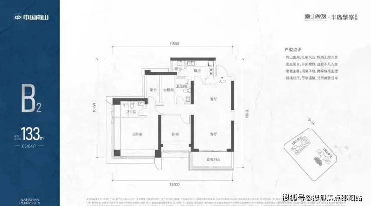 B2有两条腿,分别1-2栋03/04,主朝向西南向,竖厅设计。