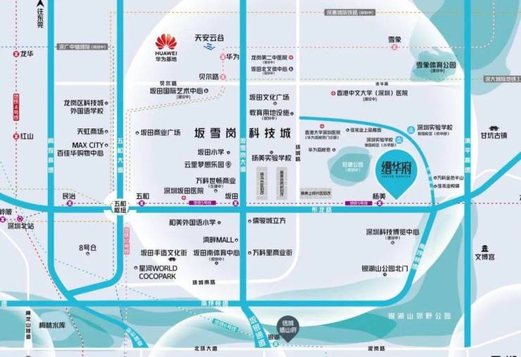 交通距5号线杨美地铁口约500米,2站到五和站换乘10号线;通道:坂银通道(已通车),距离项目约2公里,快速通达罗湖、福田中心区