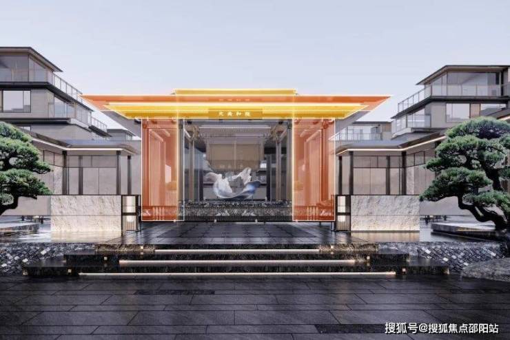 项目门庭过程效果图丨精炼重檐形式,以对称美学彰显礼序