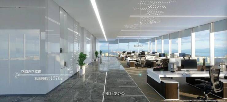 研发办公 创享海洋经济梦想研发办公A座 约2.7万㎡,22层,标准层约1565㎡,每层5户,户型面积区间约267-434㎡,方正实用,可灵活组合,层高4m,荷载300kg/㎡。