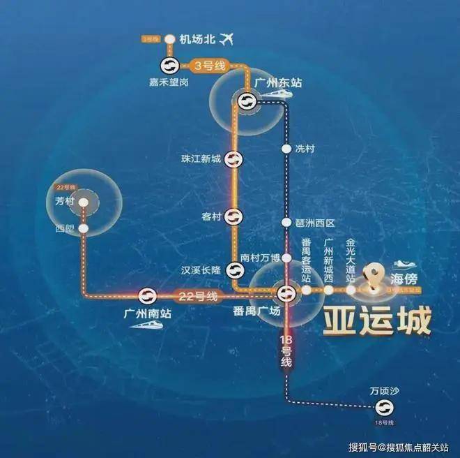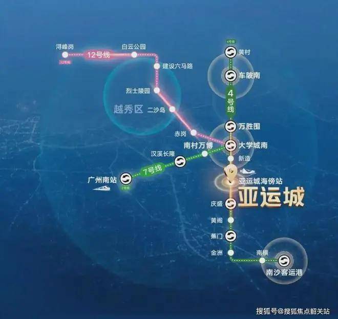 地铁线路:亚运城与广州地铁4号线、3号线、8号线等主干线交汇,通过短短几站便可快速到达天河、琶洲、大学城等核心商务区域。