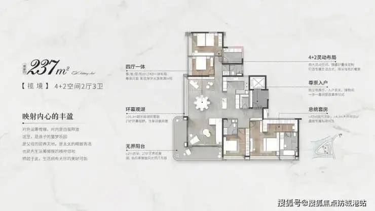 中海天幕湾精心打造了约180/237平方米的湖心岛居大平层,全面升维空间的尺度感与居住的舒适度。户型设计考究,空间布局合理,采光充足,视野开阔。无论是家庭聚会还是朋友来访,都能在这里享受到高品质的生活体验。项目不仅注重空间的功能性,更强调居住的舒适性和美观性,真正实现了都市生活的理想追求。