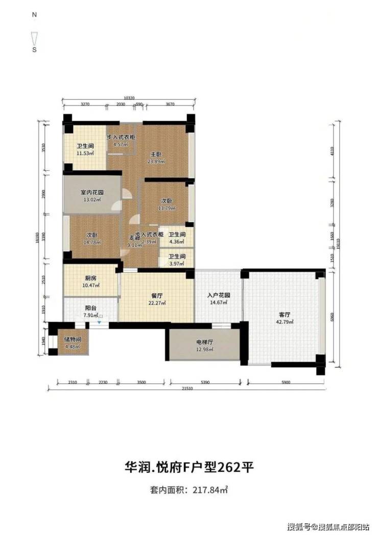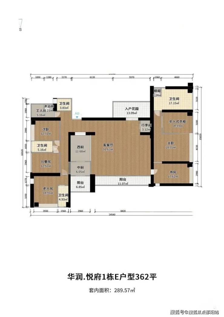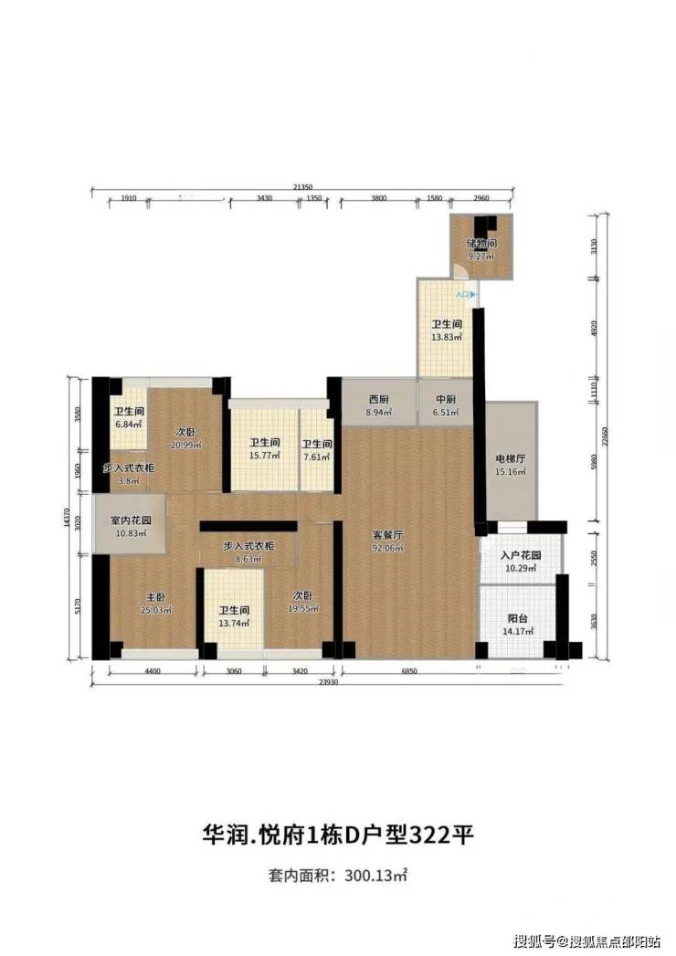 户型解析:C户型是悦府北区面积最小的户型,该户型亮点是客厅开间8.4米是除了A、E两套端头位置最大的户型外,在249-263㎡户型内唯一一个客厅开间在8米以上的,公共空间的豪宅,其次,该户型图虽标示为三房两厅三卫,但实际上户型图标示的室内花园,是一个开间2.4米的房间,可以作为书房使用,如果将其与主卧相连通作为主卧套内书房,改造空间